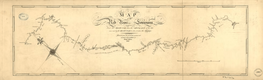 Below: 1806 map of the Red River by Nicholas King based upon data collected by the Freeman-Custis Expedition.